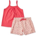 Light, lovely, and made for twirling into dreamland — the Blossom Breeze Sleepwear Set features a soft camisole top and matching shorts with tiny pink floral prints.