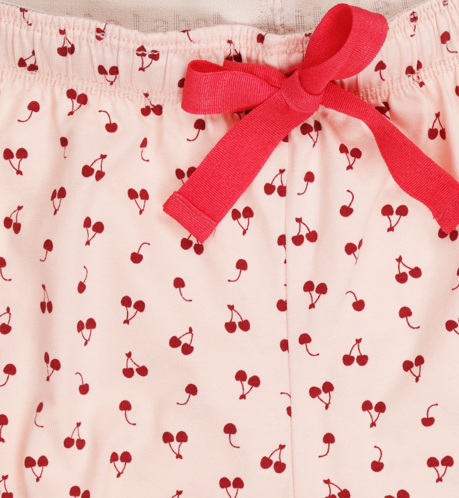 A charming set for sweet slumbers. The Cherry Belle Cami Sleep Set pairs a soft coral camisole with light pink cherry-print shorts, tied together with a matching bow.