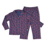 Ready, set, dream! This button-up sleepwear set is designed for little speedsters who love adventure. Featuring a bold navy base with an all-over red car print, it’s made from soft, breathable fabric for all-night comfort. The classic collar and full-length pants add a touch of timeless charm to every bedtime routine.