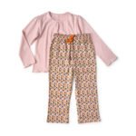 A sweet blend of soft and playful, the Starlight Meadow Sleepwear Set pairs a gentle pink long-sleeve top with vibrant star-patterned pants in earthy hues of orange, navy, and blush.
